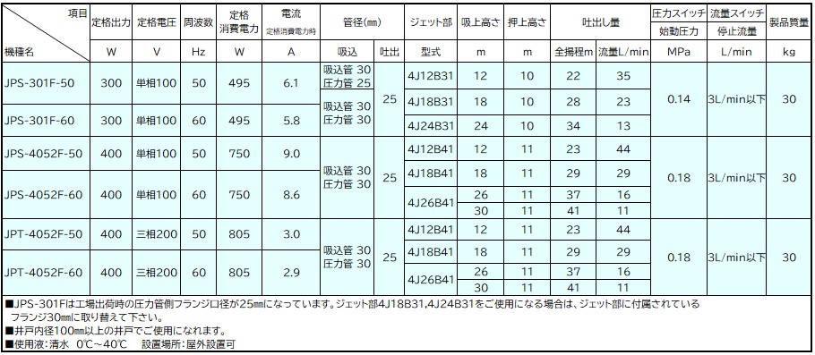 JPS-301F-50 JPS-301F-60 JPS-4052F-50 JPS-4052F-60 JPT-4052F-50 JPT-4052F-60