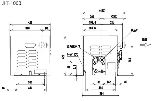 ●JPT-1003を自動運転でご使用する場合は、圧力タンクと2点切圧力スイッチをお取付け下さい。
