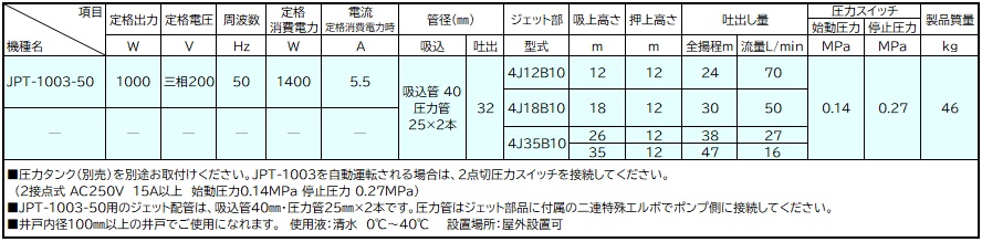50=50Hz用 JPT=200V用
