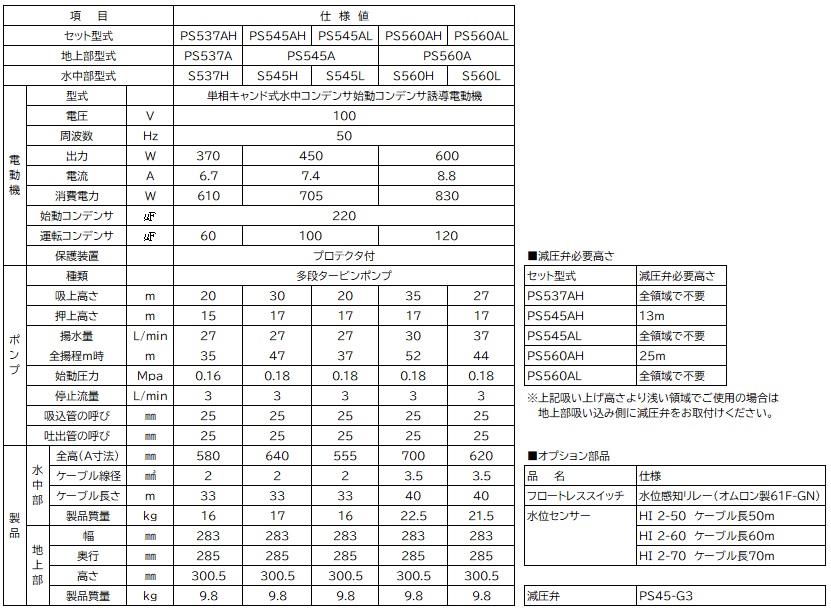 PS537AH PS545AH PS545AL PS560AH PS560AL