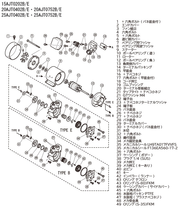 AJT メカニカルシールタイプ 全閉外扇型電動機