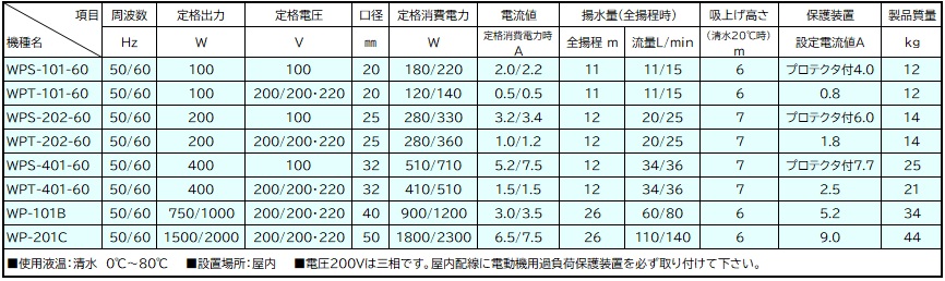 WPS-101-60 WPT-101-60 WPS-202-60 WPT-202-60 WPS-401-60 WPT-401-60 WP-101B WP-201C